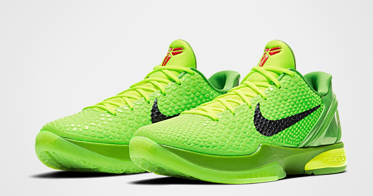The Nike Kobe 6 Protro Green Apple ($180) will be available via Nike’s SNKRS app starting 7 a.m. Pacific Dec. 24.